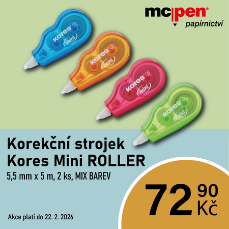 V našich prodejnách McPen papírnictví aktuálně probíhá nabídka na 2ks korekčního strojku Kores Mini Roller.
