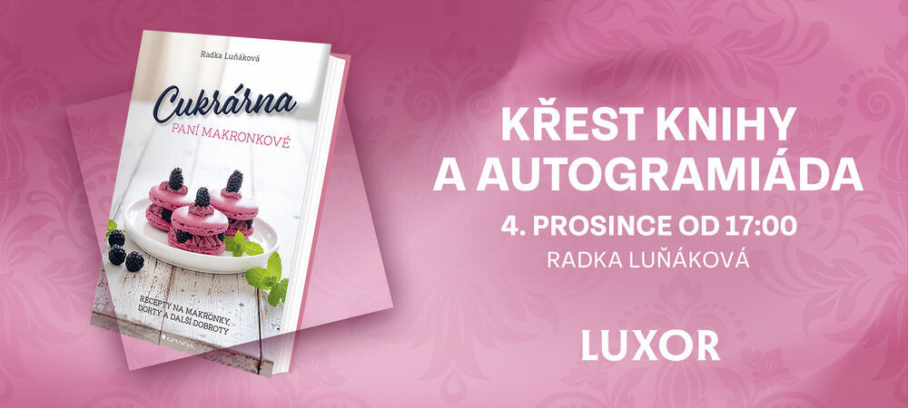 Futurum Hradec Králové zve všechny milovníky sladkého pečení na výjimečnou událost. Ve čtvrtek 4. prosince 2025 od 17 hodin proběhne před knihkupectvím Luxor slavnostní křest a autogramiáda nové knihy Radky Luňákové – Cukrárna paní Makronkové.