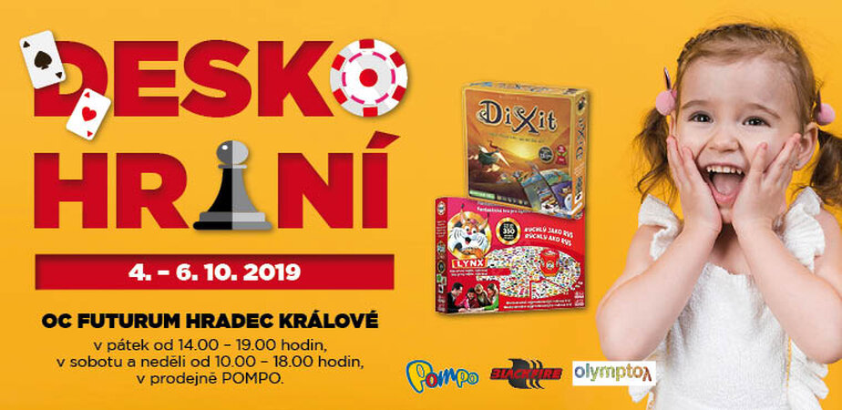 Hrajete rádi stolní hry? Nebo jste je ještě nevyzkoušeli, ať už z jakéhokoliv důvodu? Přijďte do prodejny POMPO na Deskohraní ve dnech 4. – 6. 10. 2019 a můžete si zkusit zahrát s námi.