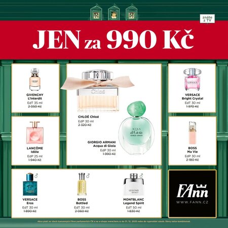 Ve FAnn parfumerii právě voní skvělá nabídka. Ikonické parfémy značek jako Chloé, Armani nebo Lancôme jen za 990 Kč! Dopřejte si kousek luxusu za výjimečnou cenu.
