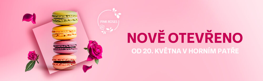 Vychutnejte si naši sladkou novinku. Už 20. května otevíráme vaši oblíbenou cukrárnu Pink Roses v horním patře našeho Futura. Sladkosti, dortíky a lahodná káva - to vše na jednom místě.