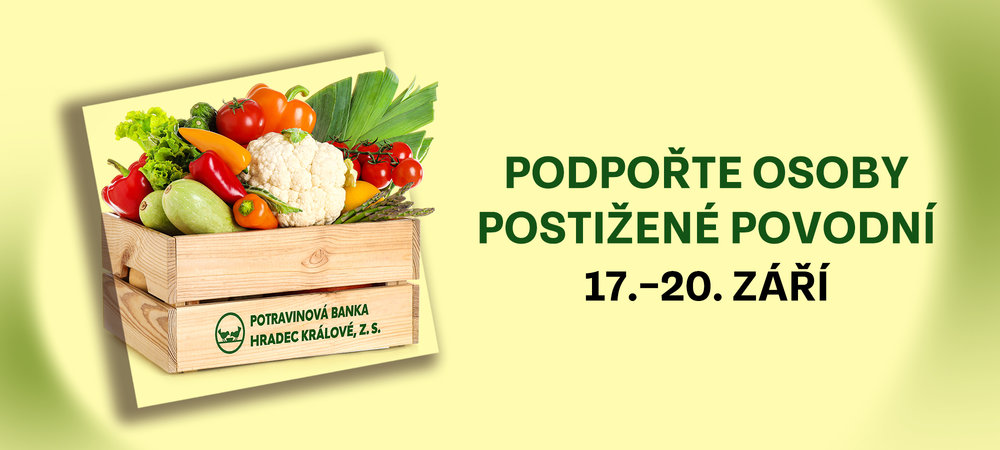 Pomozte s námi lidem, kteří se ocitli v tíživé situaci kvůli povodním. Až do pátku 20. září můžete v OC Futurum darovat trvanlivé potraviny a drogistické zboží dobrovolníkům Oblastní charity Hradec Králové. Najdete je u pokladen Tesca každý den od 13 do 17 hodin. Veškeré dary budou prostřednictvím Potravinové banky Hradec Králové distribuovány do postižených oblastí.