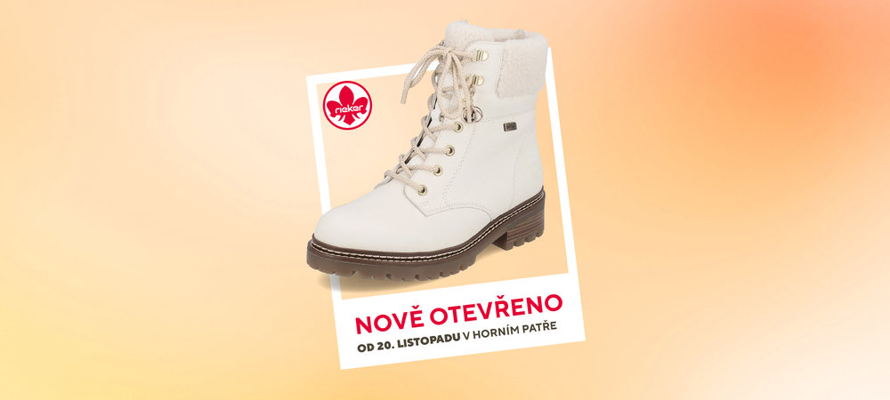 Poznejte prodejnu ubuvi značky Rieker, která spojuje skvělý vzhled a pohodlí. Najdete ji nově od pondělí 20. listopadu v hradeckém Futuru, v horním patře za kavárnou Starbucks.