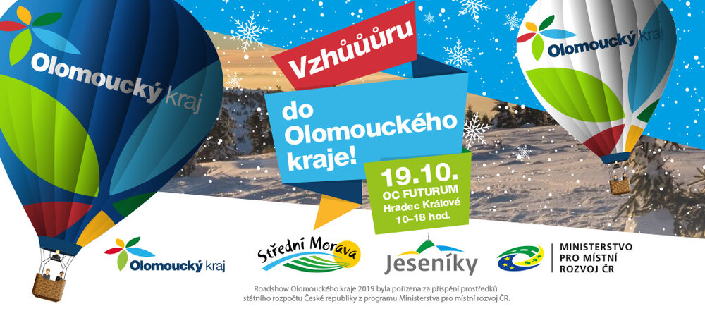 Navštivte nás v sobotu 19.října 2019 od 10 do18 hodin v OC Futurum a vyhlédněte si svou dovolenou v Olomouckém kraji! Připravena je pro vás ochutnávka regionálních potravin, virtuální realita či ski trenažér.