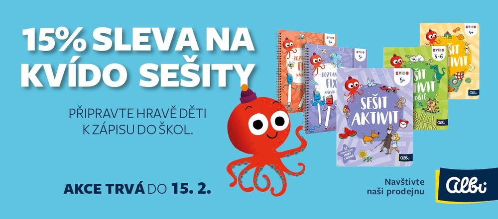S Kvídem do školy hravě a chytře – teď s 15% slevou na Kvído sešity na prodejnách Albi.