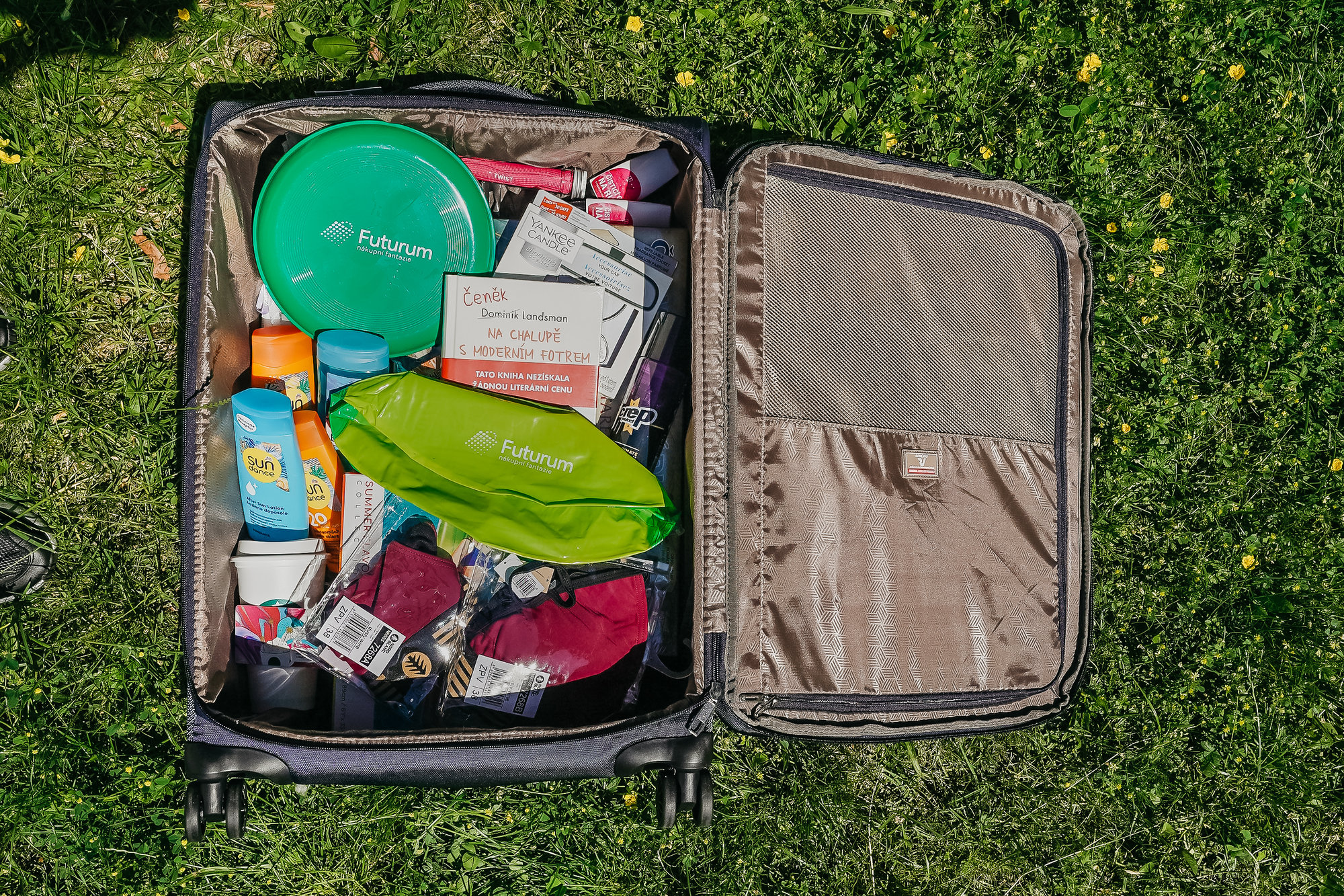 Společně s vybranými prodejnami v našem centru jsme kufr vybavili různými potřebnostmi, drobnostmi a nezbytnostmi. Výhrou vedle kufru Roncato Joy budou například také opalovací přípravky, něco ke čtení, nafukovací lehátko, cestovní kosmetika, dámské plavky, vůně do auta, hry nebo třeba re-use kelímek na pití.