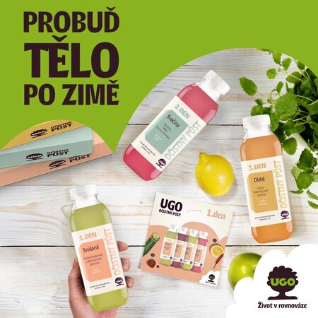 UGO Očistný půst je šťavnatý program pro každého, kdo se chce vyhnout únavě a umožnit tělu efektivně využít jeho přirozené regenerační schopnosti. 9 dní stravování podle pravidel přerušovaného půstu kombinuje 3 dny na šťávách s 6 tzv. čistými dny lehkého stravování podle doporučeného jídelníčku.