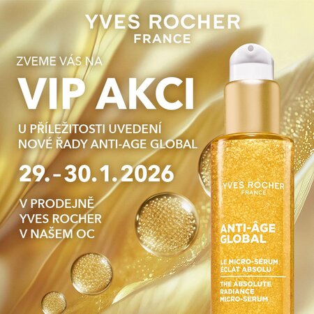 Přijďte ve dnech 29. – 30. 1. 2026 do prodejny rostlinné kosmetiky Yves Rocher a užijte si spolu s námi event u příležitosti uvedení inovované řady péče proti stárnutí pleti Anti-Age Global.