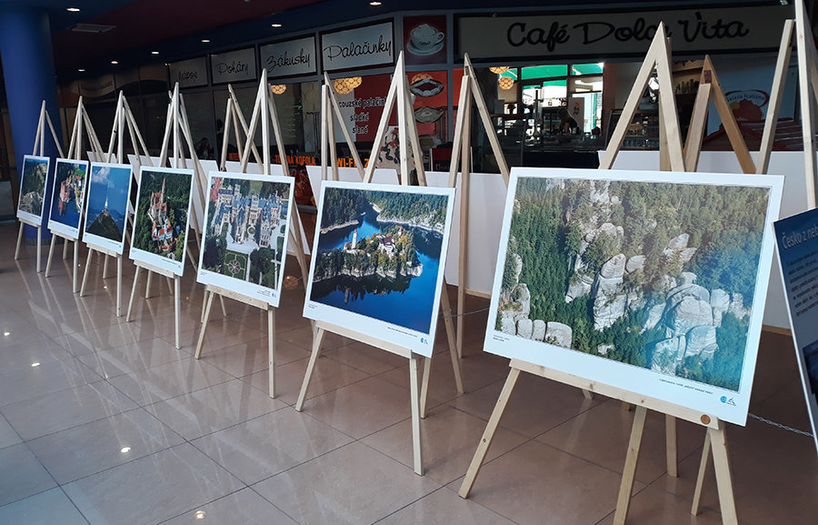 U přílěžitosti vydání publikace Česko z nebe je expozice k dispozici v horním patře centra. Na 15 exponátech jsouk vidění jedinečné pohledy na krásná známá i méně známá místa naší vlasti hezky shora.